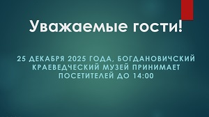 25 декабря 2025 года, Богдановичский краеведческий музей принимает посетителей до 14:00.